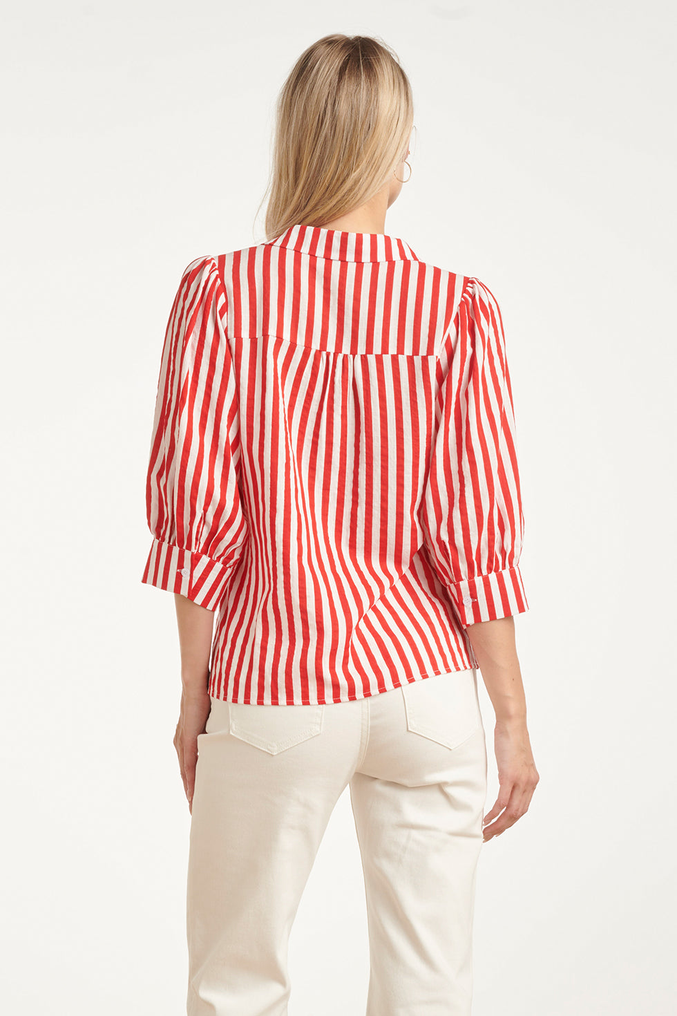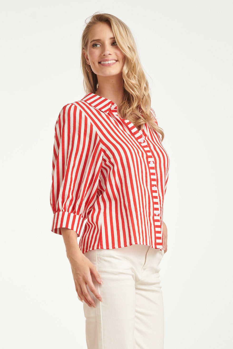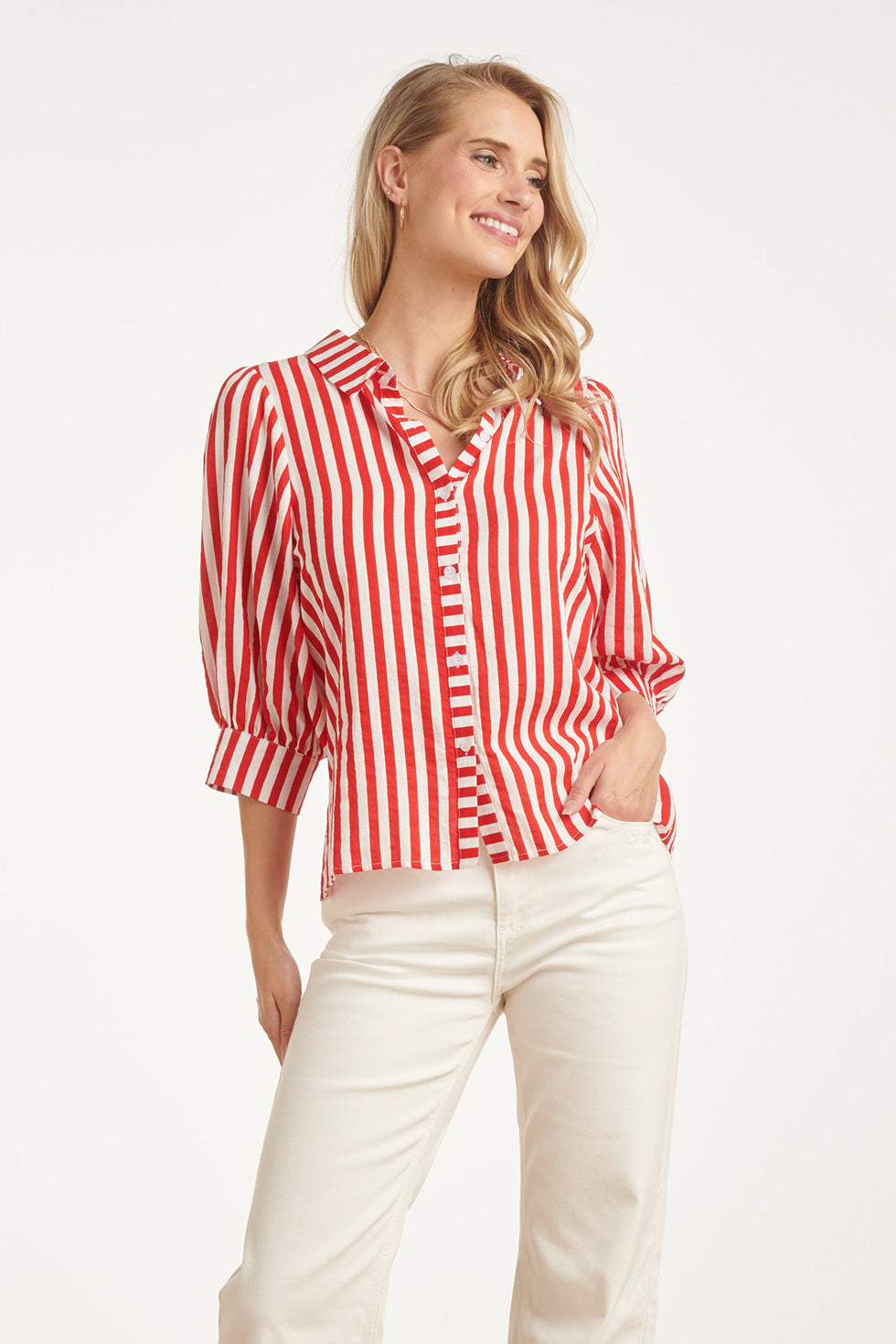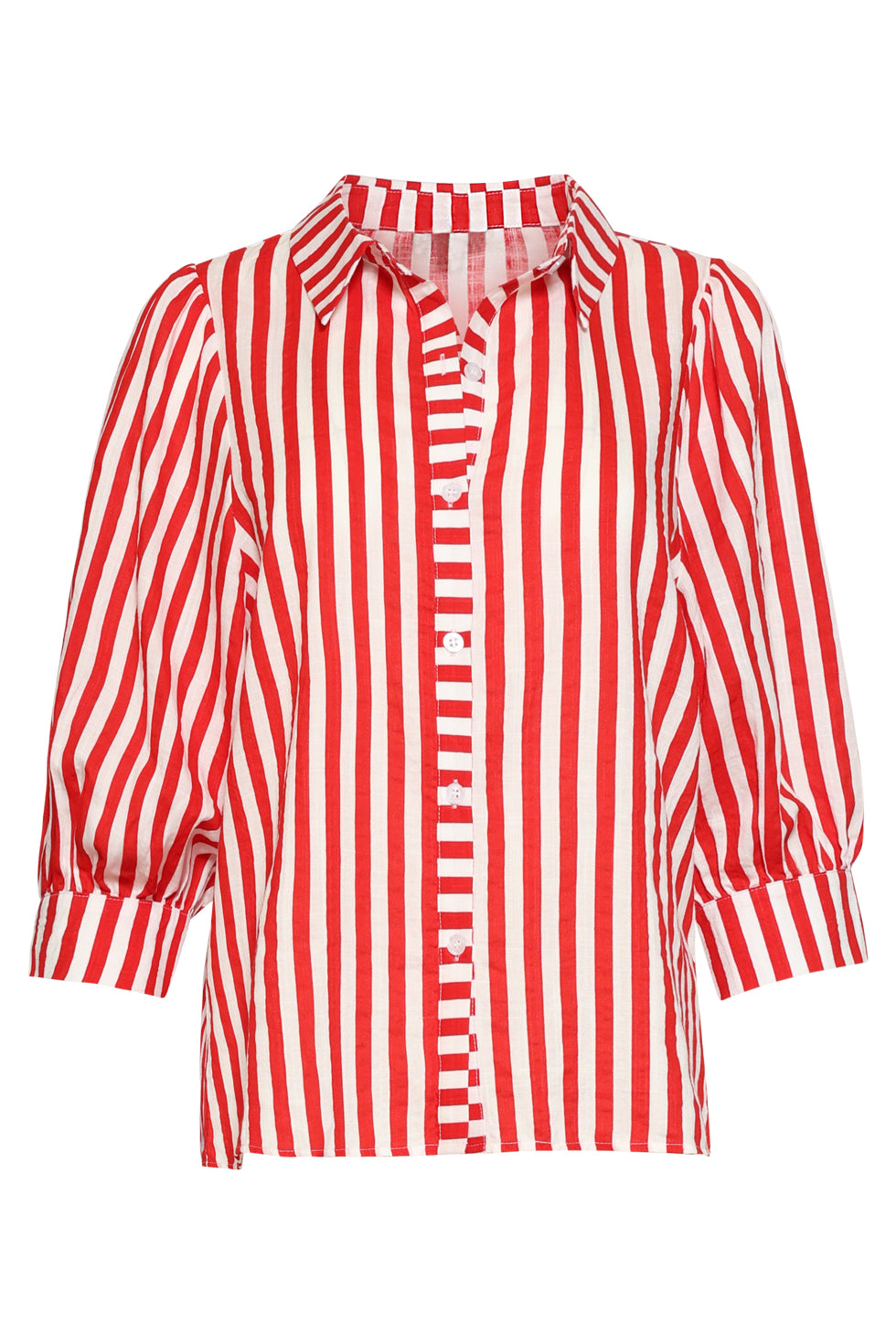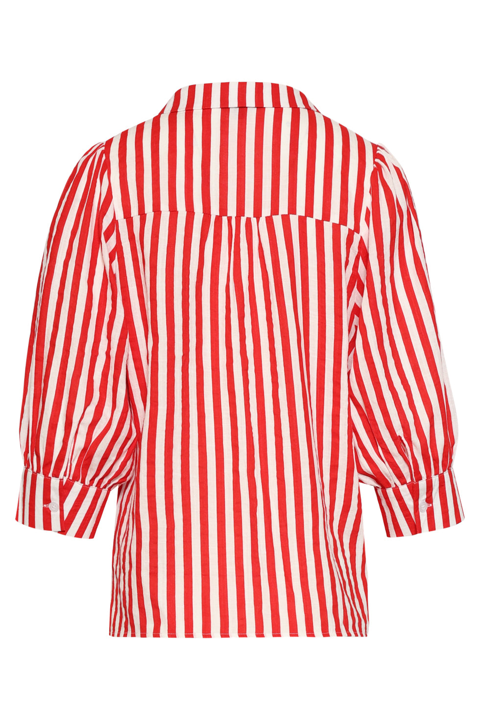 Gestreepte Dames Blouse Met Pofmouwen | Red - White