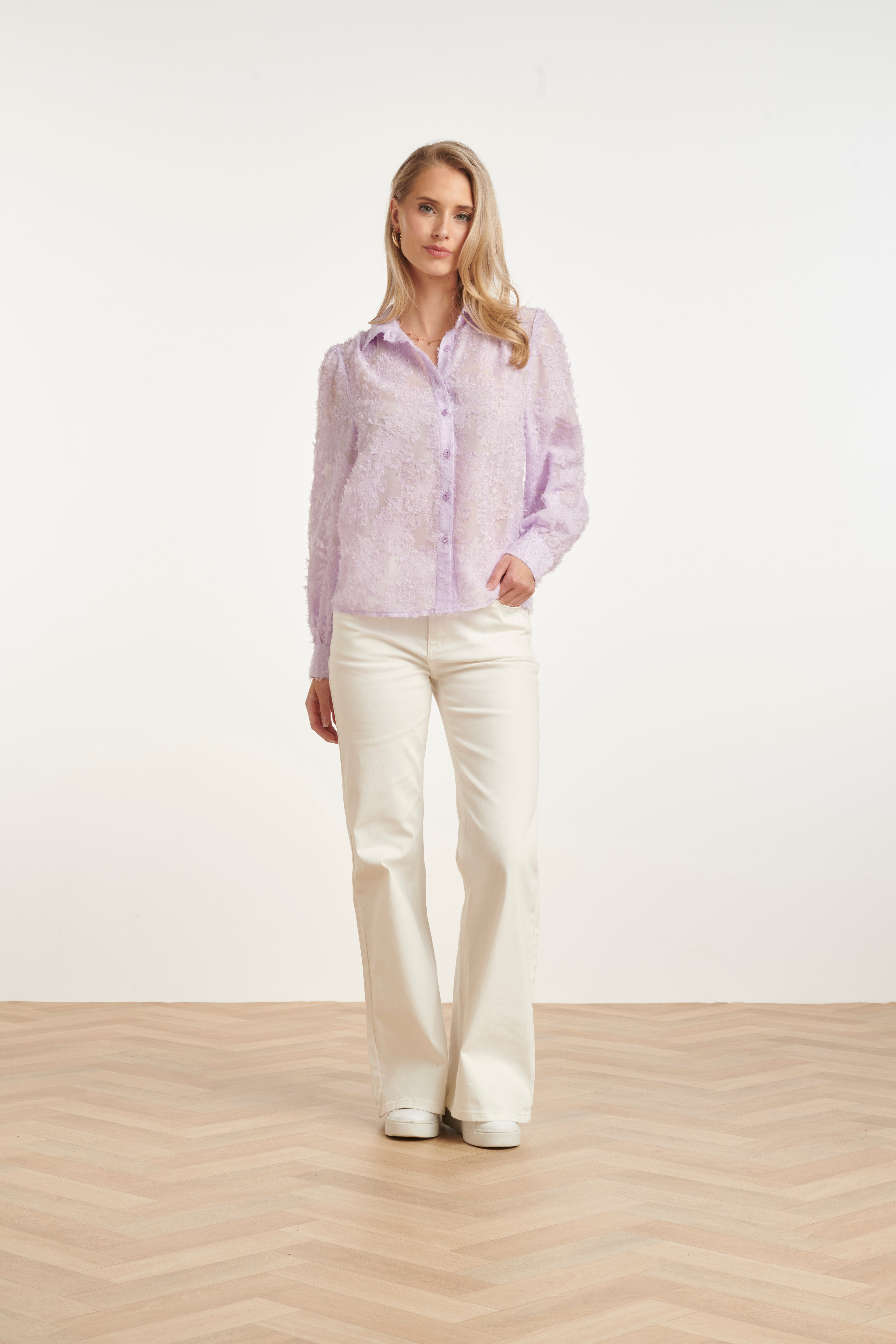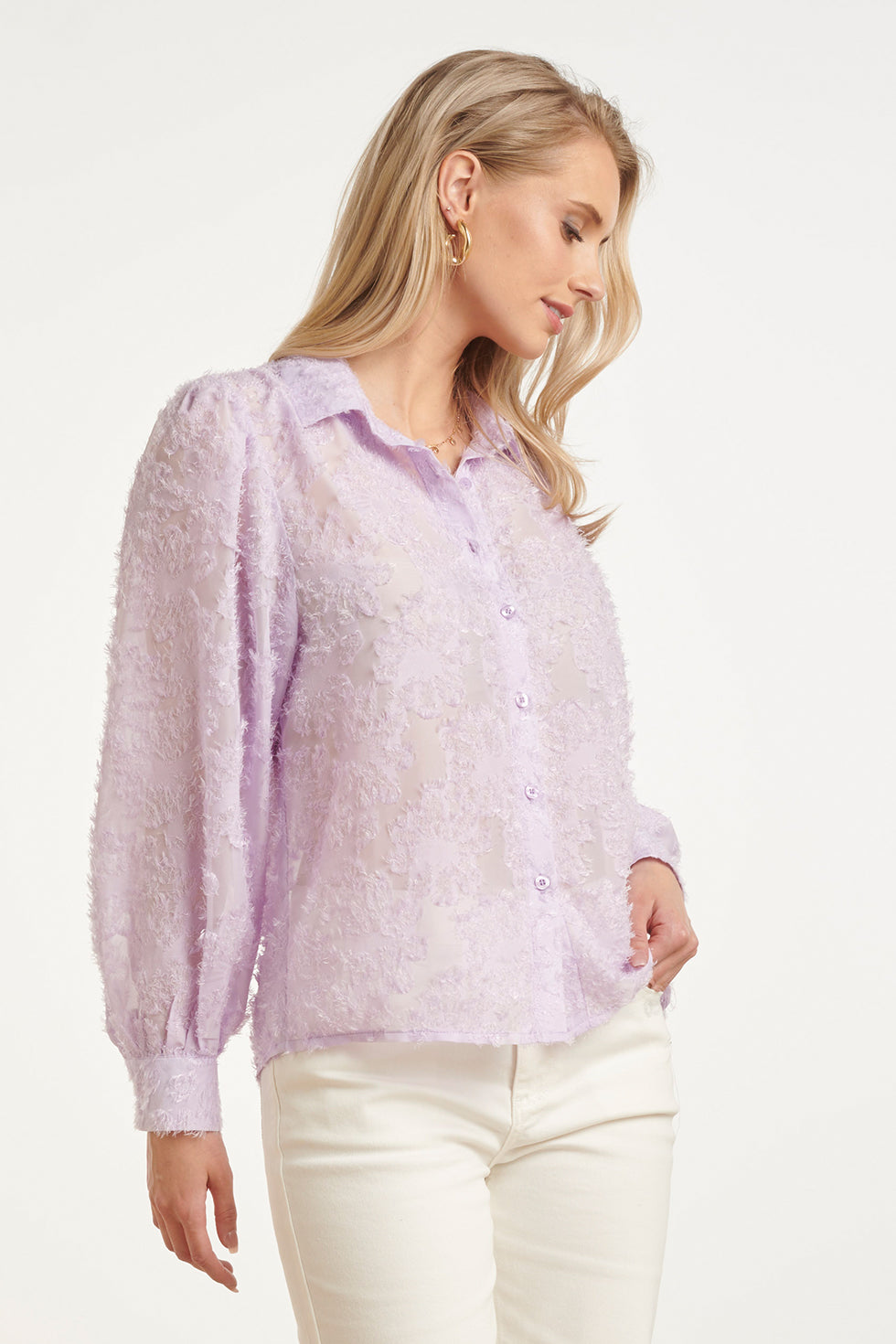 Elegante Doorschijnende Blouse Met Reliëf Print | Lilac