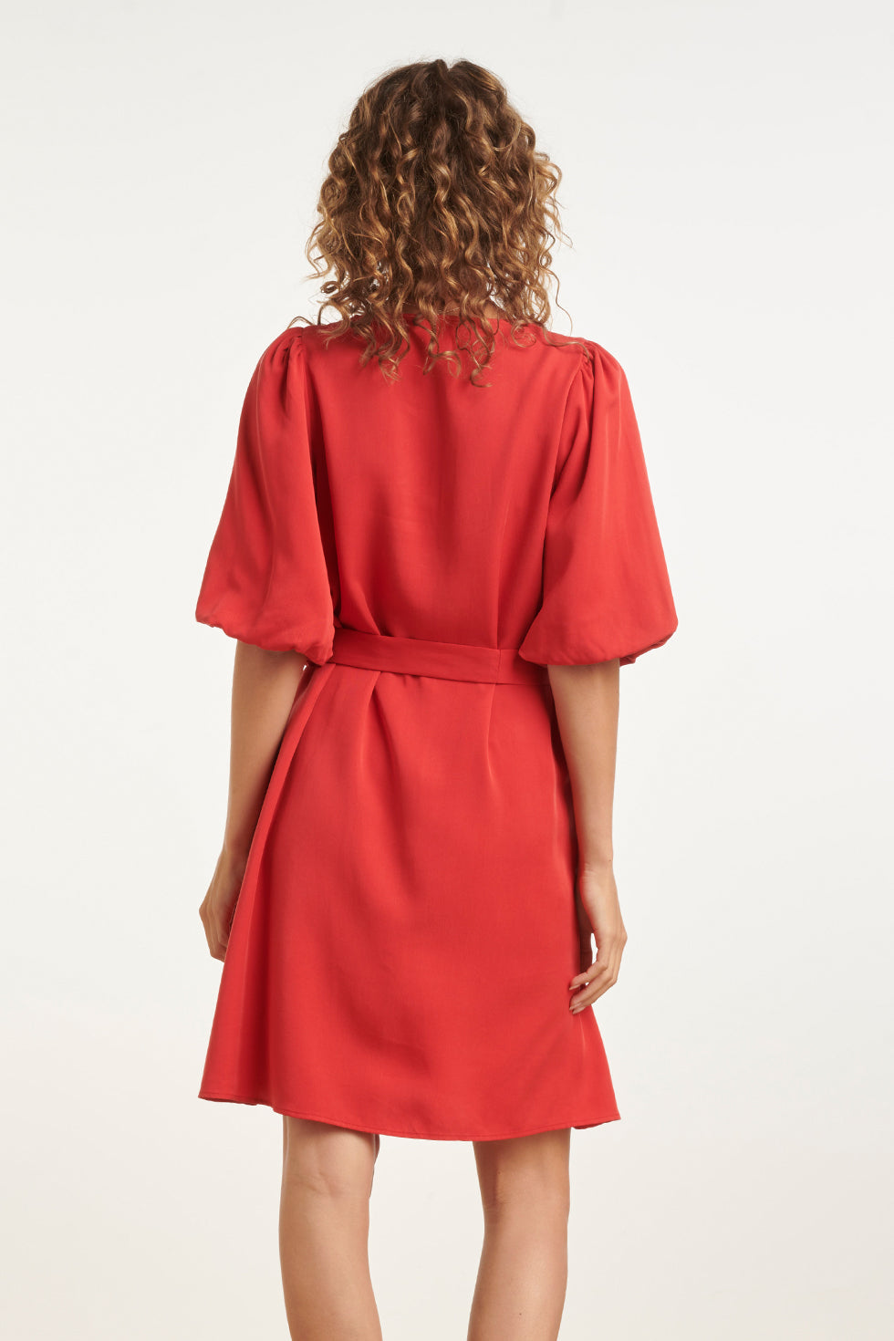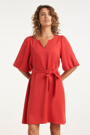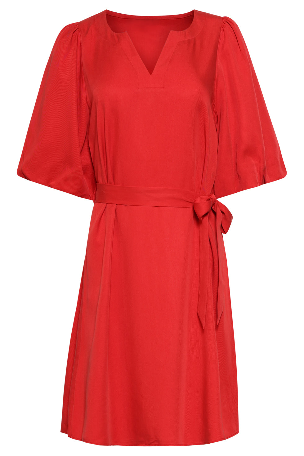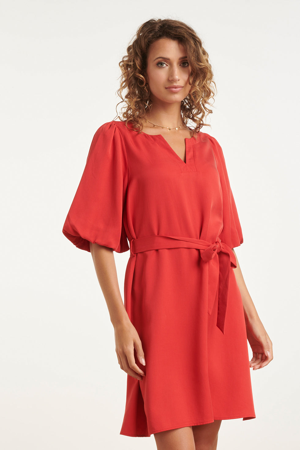 Elegante A-Lijn Jurk Met V-Hals En Strikceintuur | Red