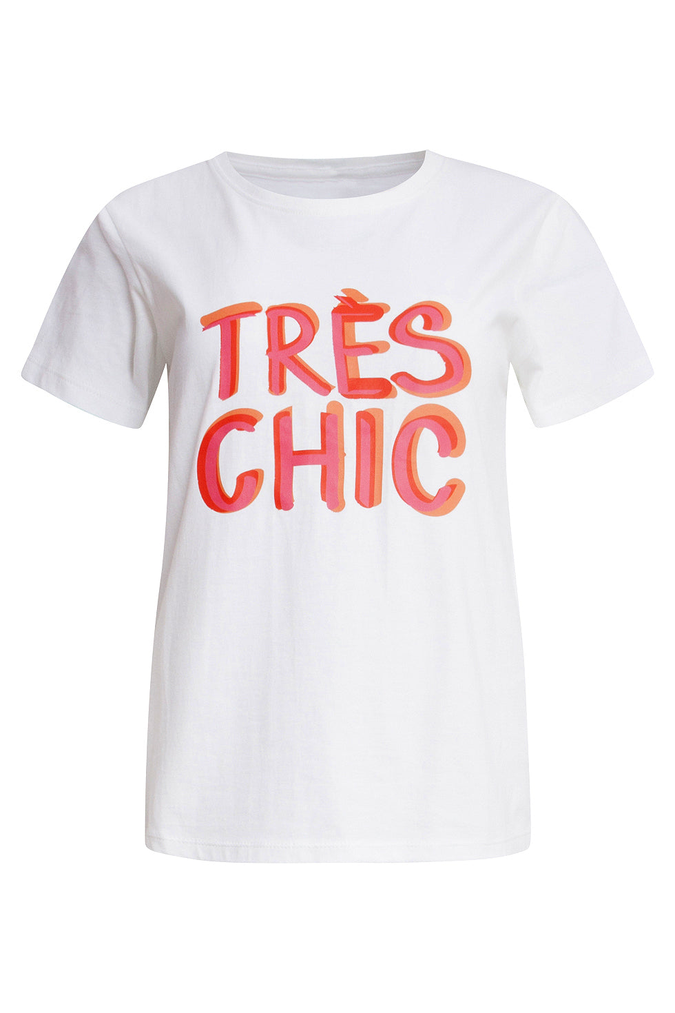 25231 Te Katoenen T-Shirt Met Tres Chic Opdrukperzik | White - Muticolour