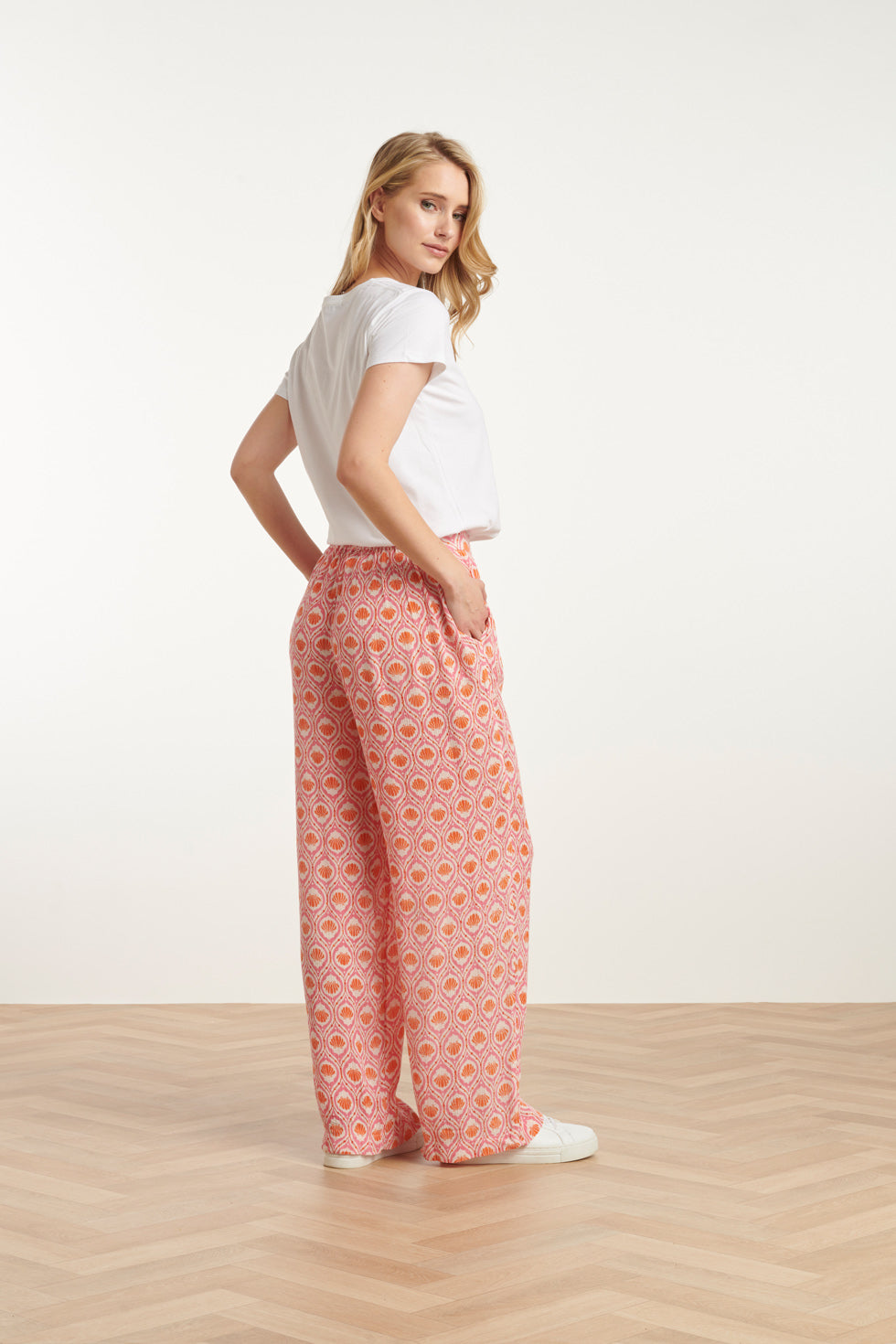 - Modieuze "Tres Chic" opdruk in roze en perzik.