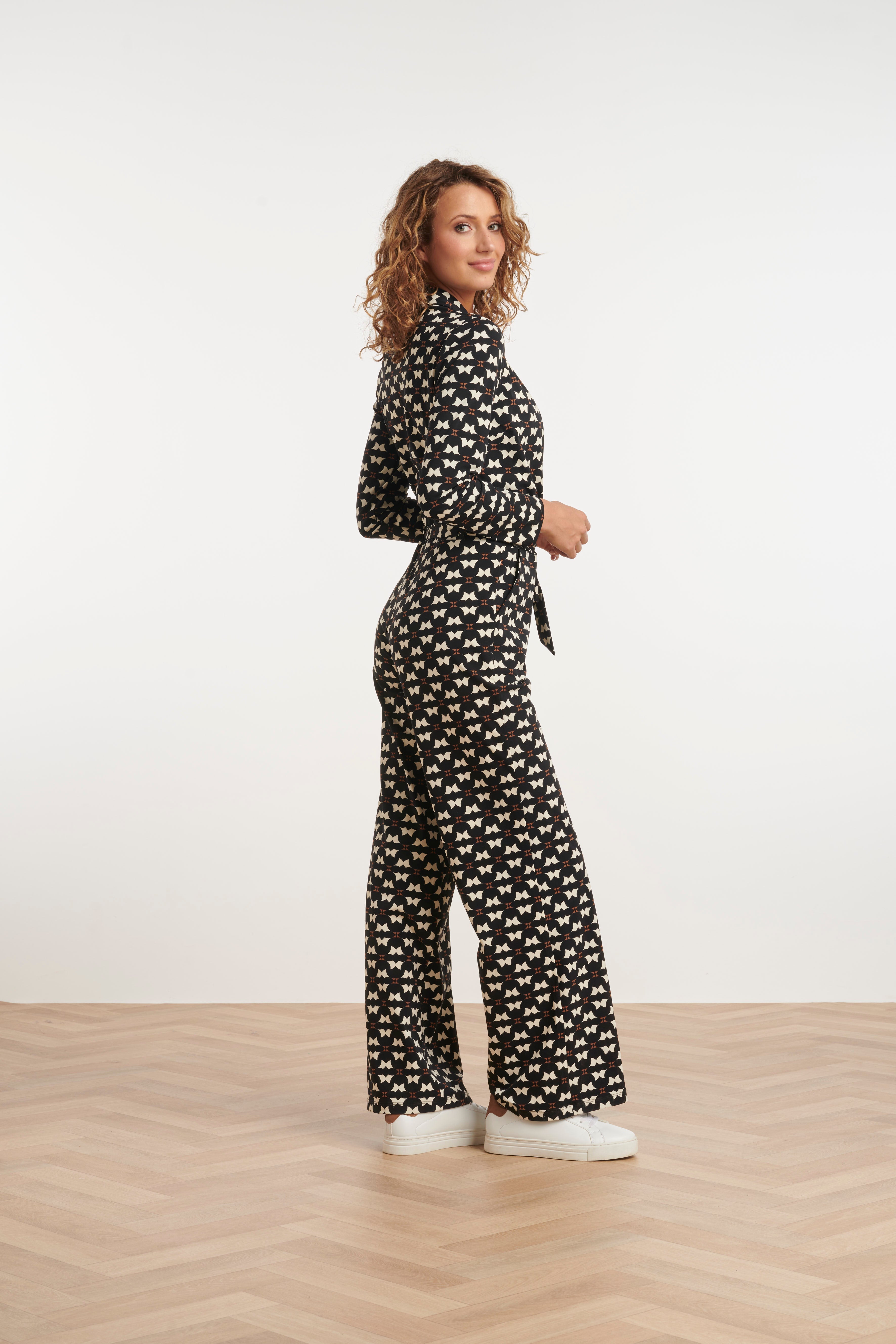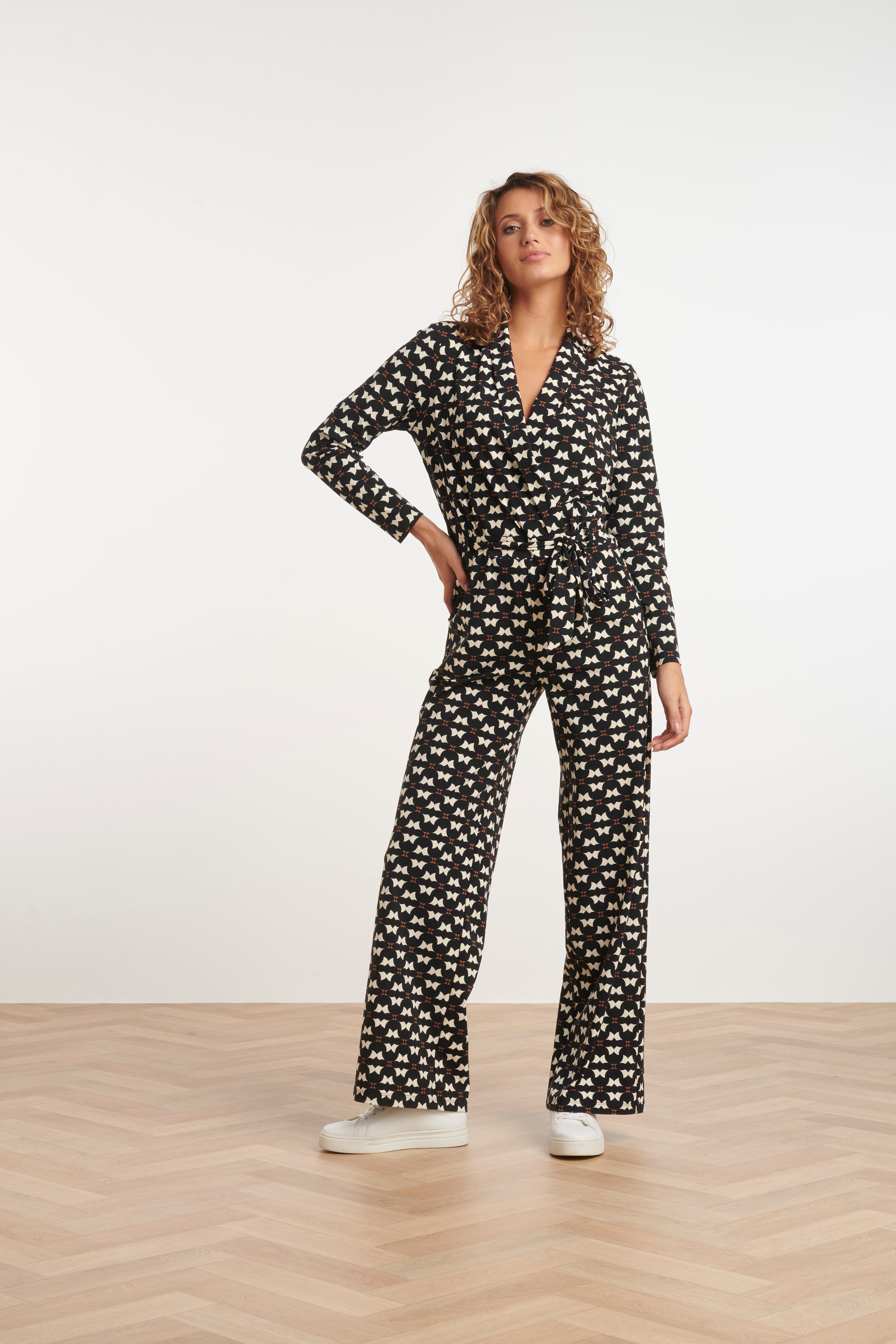 24815 Grafisch Geprinte Travel Kwaliteit Jumpsuit | Black - Sand REA-pris$93.00 Pris$155.00